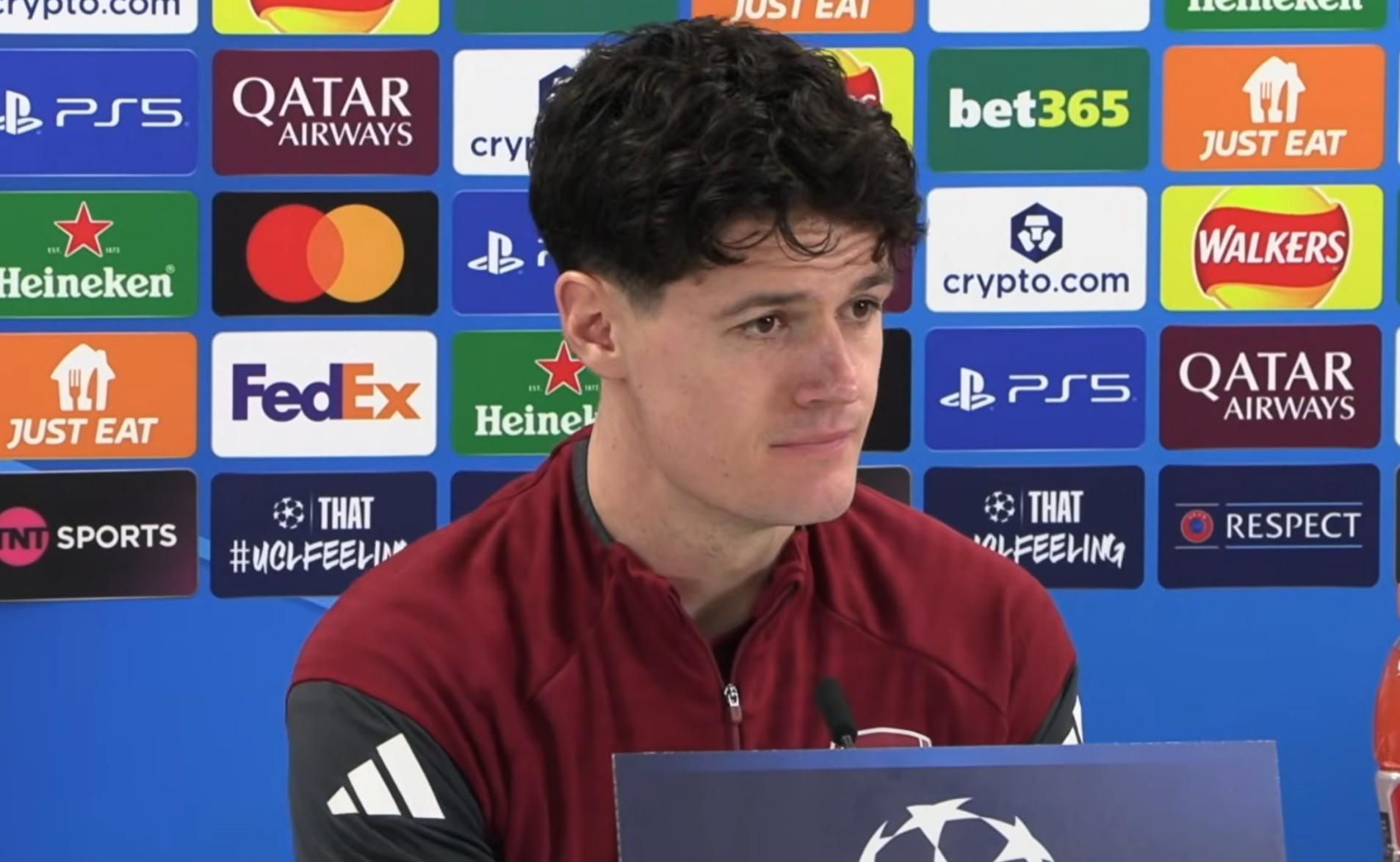 完全没有。我在这里过得非常开心,俱乐部给到我的反馈也是他们对我的表现和状态很满意,目前我们之间是一种双向认可的良好关系。而且这对我来说也是一个成长和学习的过程,我需要不断提升自己,吃透阿尔特塔的战术要求,把这些内容真正内化为自己的东西。我能感受到,最近无论是欧冠还是英联杯的比赛,我的表现都有了不错的进步。所以希望在赛季的后半段,我能在球场上为球队做出更多贡献。